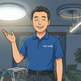 先日、冷蔵庫の入れ替え作業にお伺いしたお客様のお宅で、「ダイニングの照明が古くて暗い」とお話しされていました。確認すると大きな蛍光灯シーリングライトでしたので、2027年12月31日に蛍光灯の生産が終了予定であることをご説明し、最新のLED照明に交換させていただきました。「お料理が美味しく見えるようになったわ!」と大変喜んでいただけました。